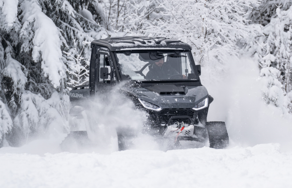 Kabina společnosti DFK Cab na off-road vozidle ochrání v zimě před sněhem i dalšími povětrnostními vlivy.