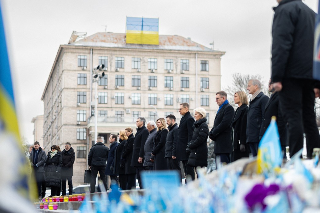 Kreml na Ukrajině nedosáhl cílů, oznámil pokračování vojenské operace. (Foto: Do Kyjeva při příležitosti 4 let od invaze dorazili António Costa, Ursula von der Leyenová a další evropští lídři).