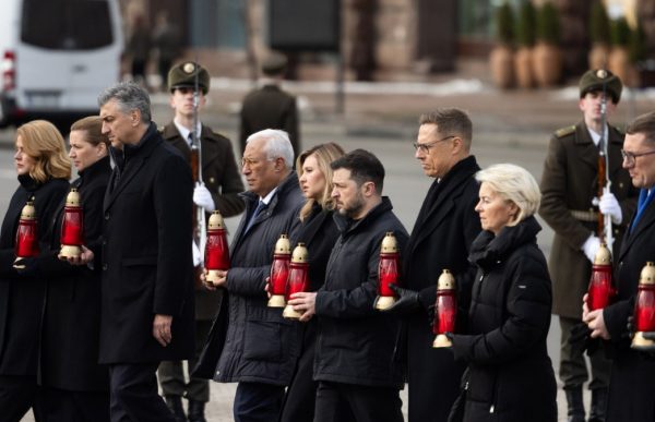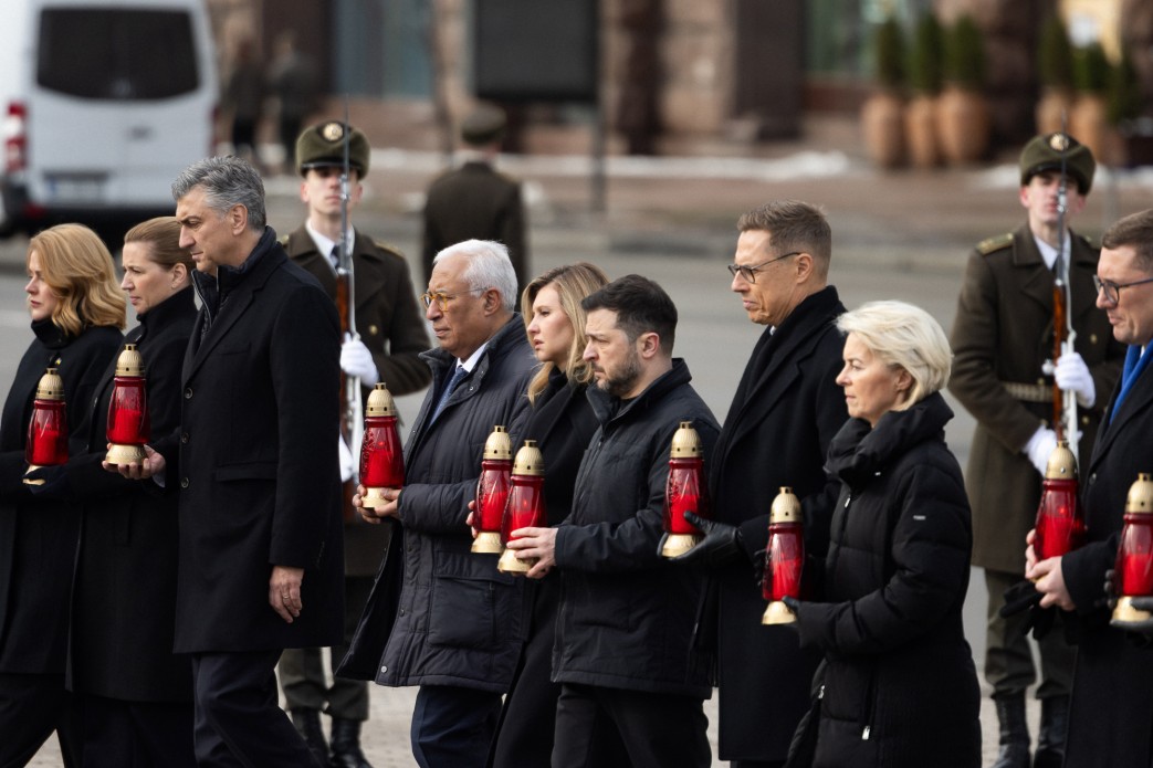 Kreml na Ukrajině nedosáhl cílů, oznámil pokračování vojenské operace. (Foto: Do Kyjeva při příležitosti 4 let od invaze dorazili António Costa, Ursula von der Leyenová a další evropští lídři).