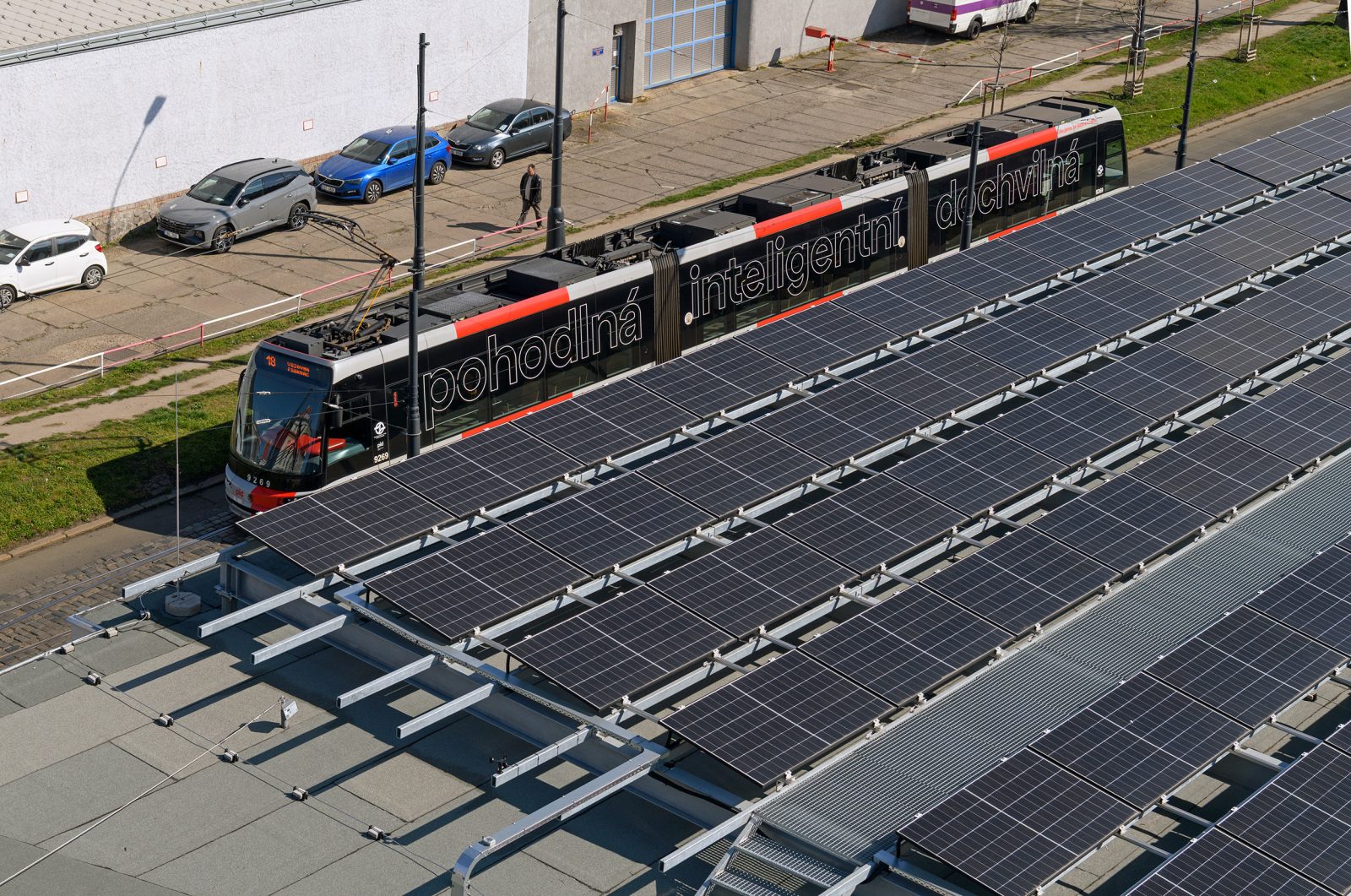 a jsem moc rád, že díky ČEZ ESCO bude spořit desítky milionů korun, zlepší komfort pro uživatele objektů a výrazně eliminuje i emise CO₂. Moc si zároveň vážíme toho, že Asociace poskytovatelů energetických služeb ocenila projekt pro dopravní podnik prvním místem v soutěži o nejlepší EPC roku 2025. Podařilo se nám například panely pokrýt všechny vhodné plochy. Díky tomu jsme tu dosáhli celkového výkonu zhruba 1,5 MW, což je srovnatelné s velkými instalacemi třeba pro logistické parky,“ vysvětluje Kamil Čermák generální ředitel ČEZ ESCO.