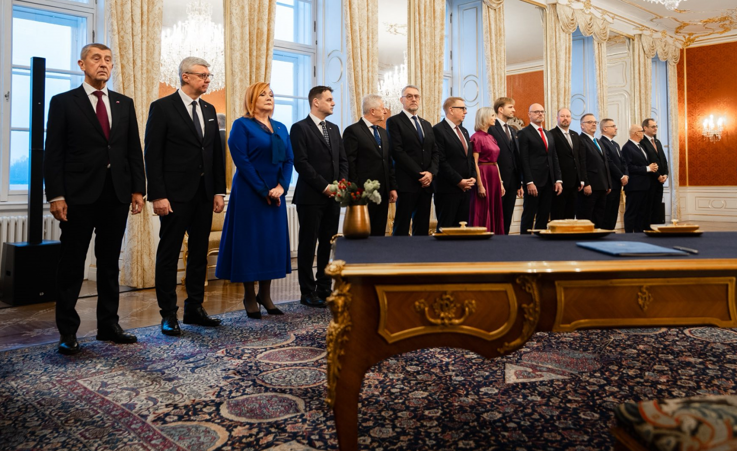 Prezident Petr Pavel oficiálně jmenoval novou vládu ČR Andreje Babiše. Není v ní Filip Turek (Motoristé sobě), který se zatím kvůli zdravotním problémům nemohl zúčastnit konzultační schůzky s prezidentem Pavlem. Vláda má zatím 15 ministrů (včetně premiéra). V jejím čele stojí nejstarší politik, slovenský Čech Andrej Babiš (71 let), který kdy vedl českou či československou vládu.